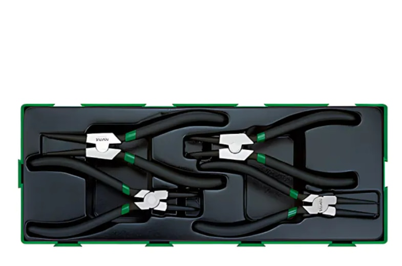 Description Item No : GTA0417 Pliers Set - A Tray Size New Mechanics Tool Sets in Plastic Insert Tray & Box All modules are designed to fit most tool chests and trolleys to enable mechanics or technicians to build their own custom tool kits Features Item No Contents GTA0417 1 DCAA1207 : 90° Retaining Ring Pliers (External Ring) - 7“ (L) 1 DCAB1207 : Straight Retaining Ring Pliers (External Ring) - 7” (L) 1 DCAC1207 : 90° Retaining Ring Pliers (Internal Ring) - 7“ (L) 1 DCAD1207 : Straight Retaining Ring Pliers (Internal Ring) - 7” (L)